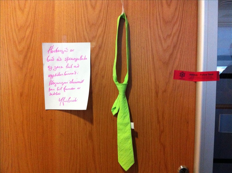 Fyrirmæli Brytans til meðlima Græna bindisins fyrir veiðifund félagsins á Grensásstöð, vorið 2013. |